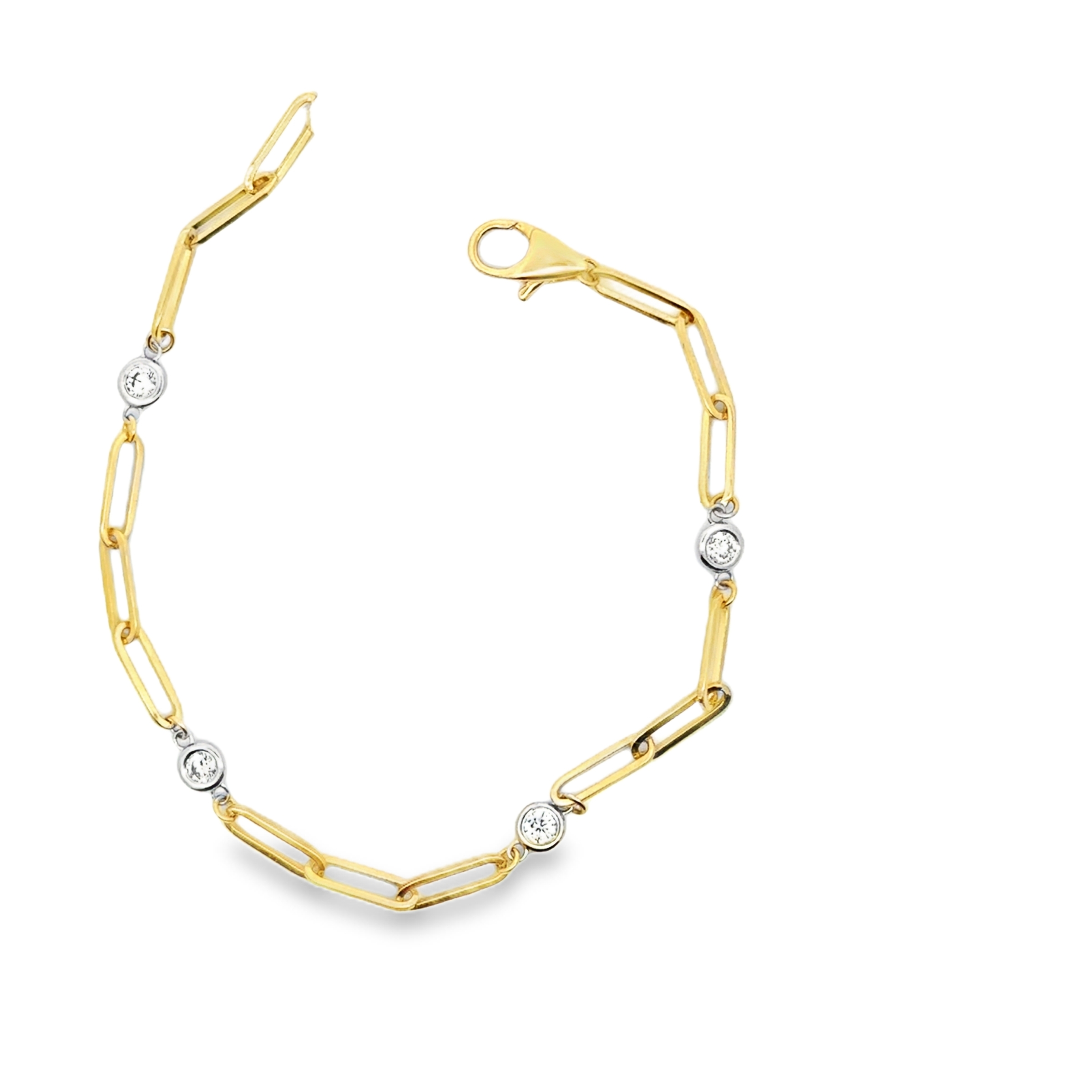 Elevate your style with this exquisite paperclip bracelet, crafted from radiant yellow & white gold. The bracelet showcases a series of natural round diamonds, adding a touch of timeless elegance and sparkle. This fine piece is a perfect blend of classic design and subtle luxury, ideal for everyday wear or special occasions.